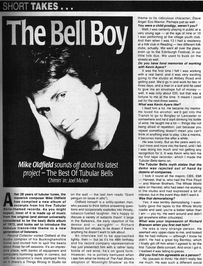 Record Collector visited Oldfield at the studio complex of his Buckinghamshire home and invited him to spill the beans about those far-off sessions. It’s an impressive place, with banks of equipment and computers humming quietly in corners, but with the eccentric’s mark stamped firmly on it (there’s a Things Wrong In Studio list on the wall- the last item reads “Giant penguin on loose in attic”).
